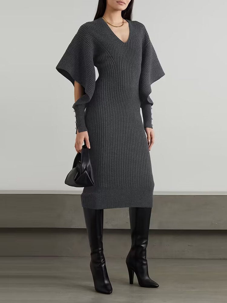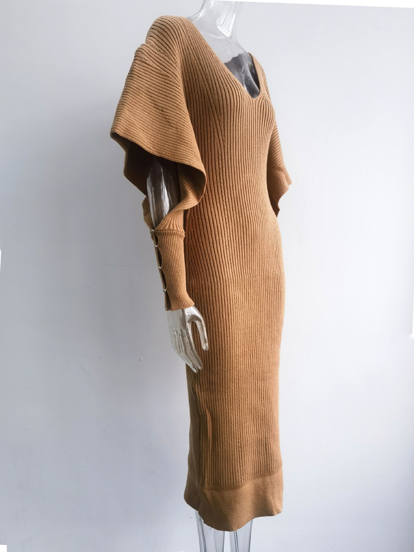 Casual Wool Dress with Dolman Sleeves for Fall/Winter