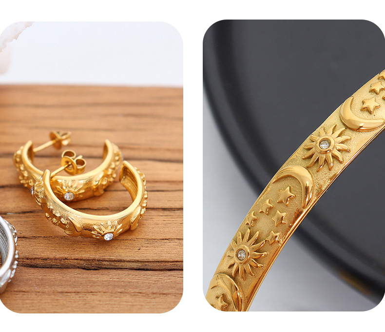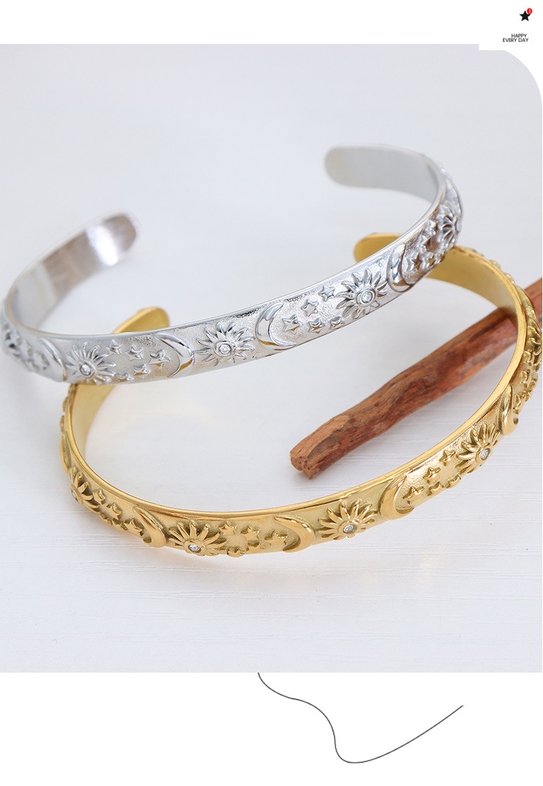 The bracelet showcases popular elements such as the moon and stars, making it a trendy addition to your accessories. Pair it with matching jewelry earrings for a complete look that shines brightly.